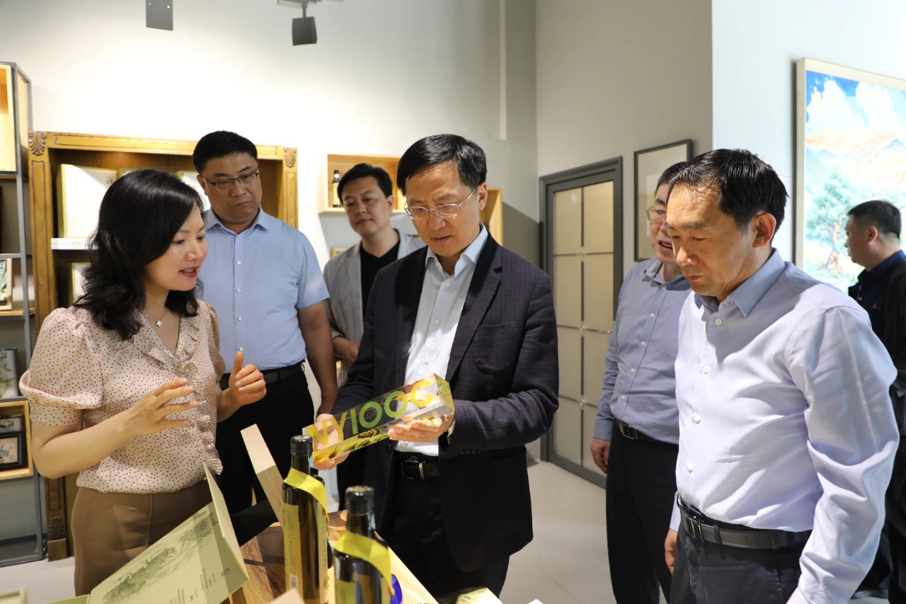在產(chǎn)品體驗區(qū)劉玉紅董事長向各位領導介紹了祥宇特級初榨橄欖油、橄欖茶、橄欖菜、橄欖保健品等系列產(chǎn)品,