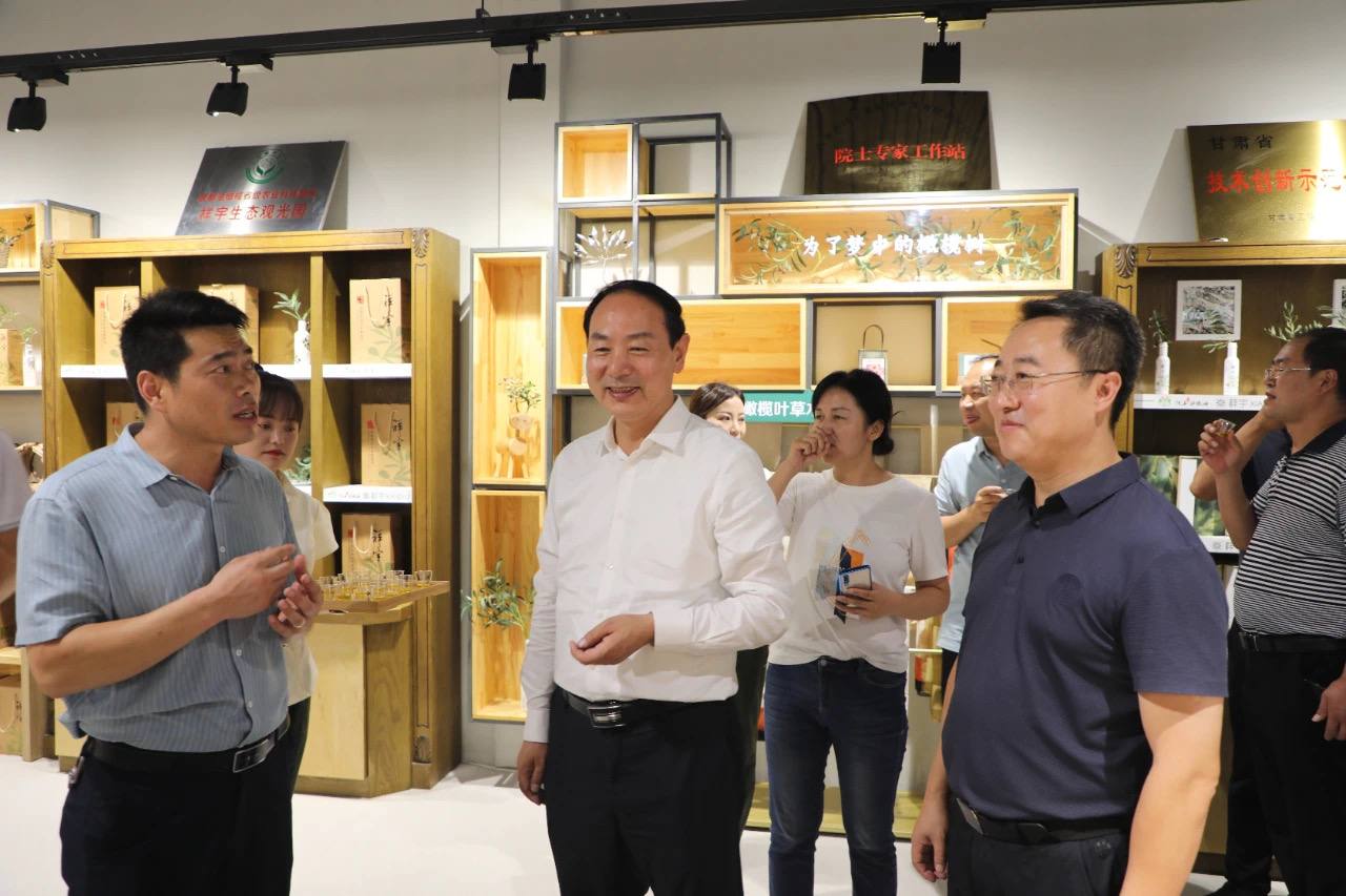 8月21日下午敦煌市委副書記陳國才、市政府副市長白甲龍等領(lǐng)導到祥宇生態(tài)產(chǎn)業(yè)園參觀考察,