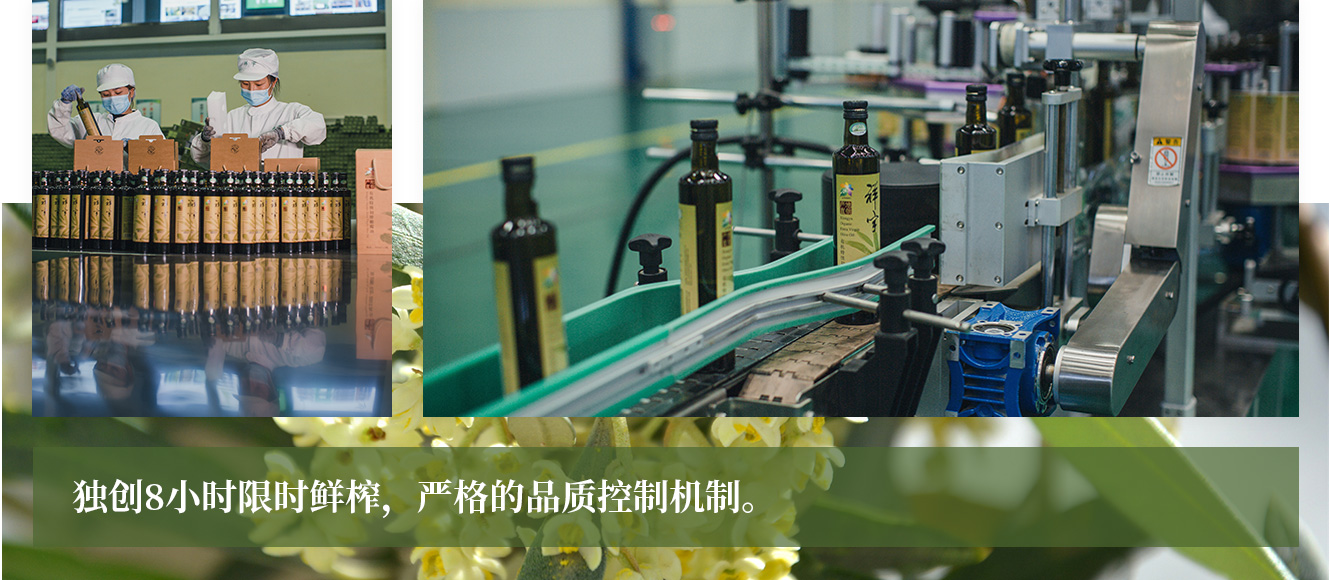 公司通過“訂單農(nóng)業(yè)”模式,獨創(chuàng)8小時限時鮮榨,從手工采摘、按質(zhì)收購、便捷運輸、純物理冷榨、充氮低恒溫儲存、灌裝等全程管理,并通過嚴格的品質(zhì)控制機制,實現(xiàn)了真正意義上的莊園級特級初榨橄欖油條件。
